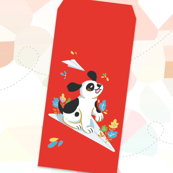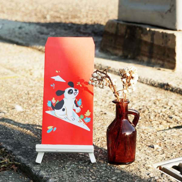 狗狗乘上希望滿載的紙飛機,新的一年,一定是花團錦簇的花路吧✈
