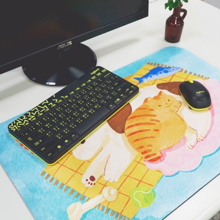 ▲ 放在桌上立刻變身大滑鼠墊~不但滑鼠空間大解放,再也不怕手滑打翻水啦~