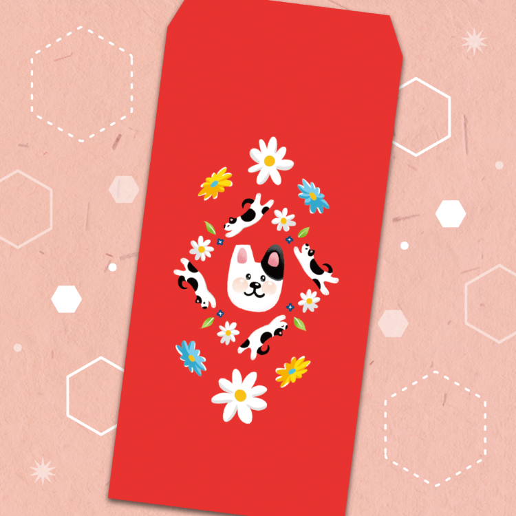 飛騰的小狗們在花叢間載歌載舞,讓這新年旺到飛起!