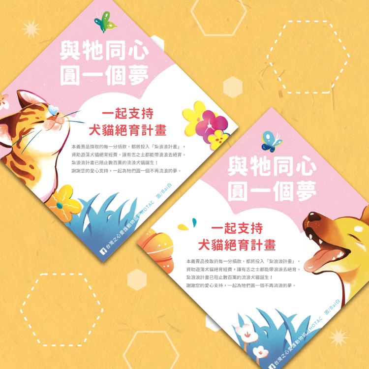 您對義賣的支持,能直接幫助街頭上的犬貓免於生育之苦💕